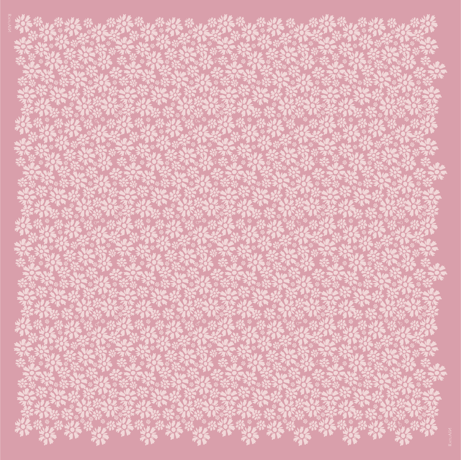 A soft pink background covered in a delicate drift of white floral silhouettes, forming a dense, airy pattern that feels elegant, feminine, and gently textured.